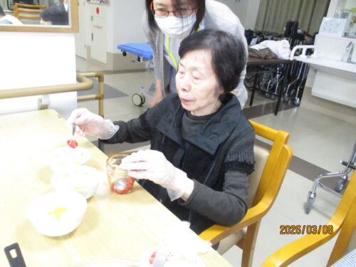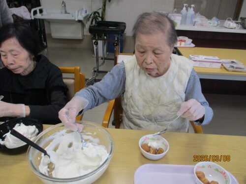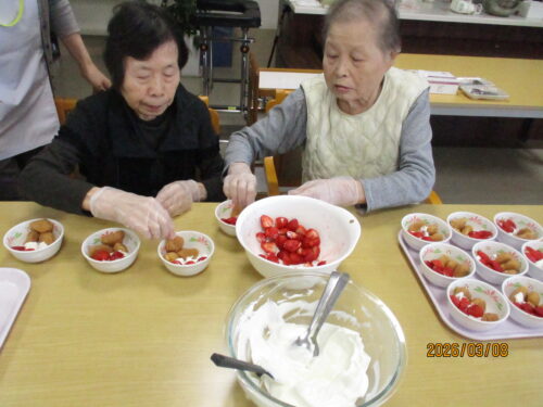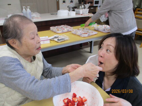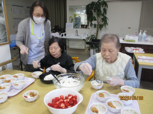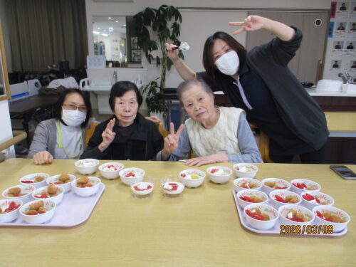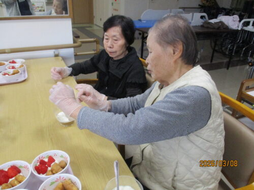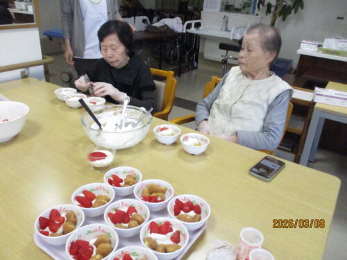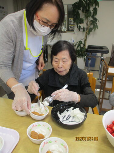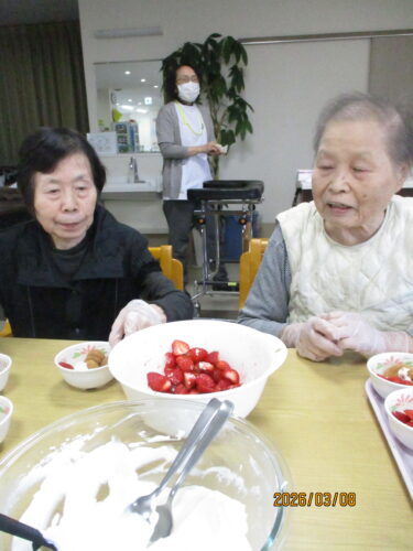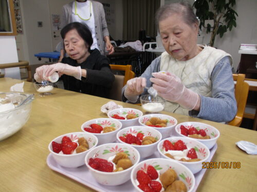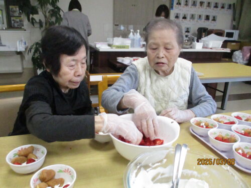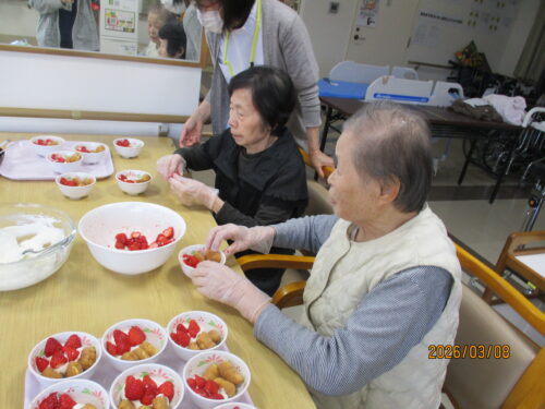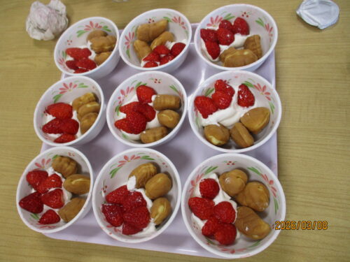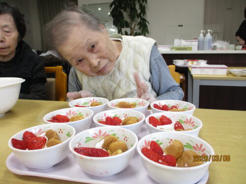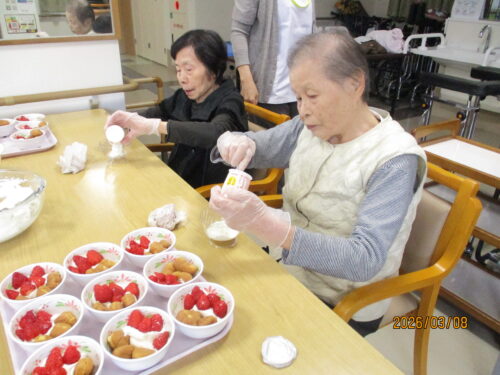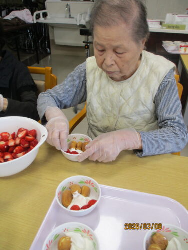 クリームの上にイチゴを乗せていきます(`・ω・´)