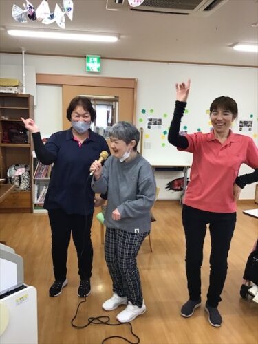 さわやか愛の家 さいだいじ館 介護 カラオケ〜🎤 2026-03-12 2026-03-12 こんにちは さわやか愛の家さいだいじ館生活介護です。 久しぶりのカラオケレク🎤 皆さん、余暇時間から曲選びにウキウキ♪ 曲が流れると、自然と身体も動きます😆 さわやか3人娘 永遠の青春満喫してます🤩