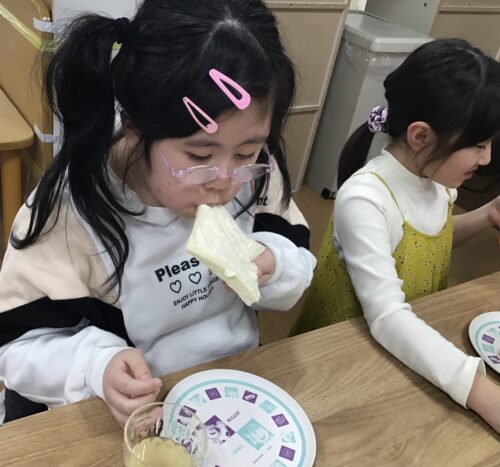 子どもたちが来る前に「美味しくなーれ 美味しくなーれ」と