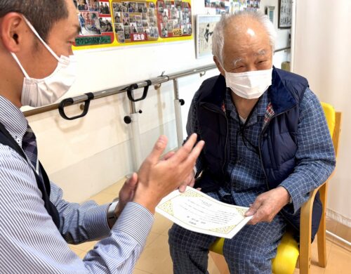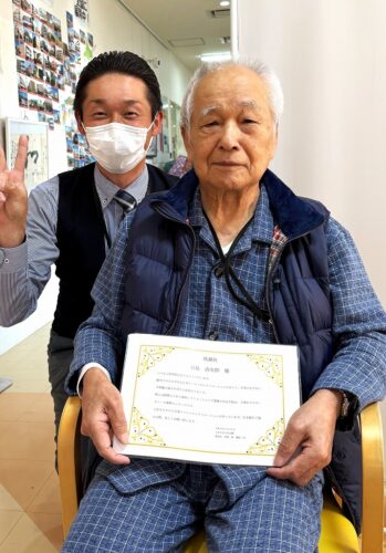先日の職員会議の席上、ショートステイご利用のK様が表彰されました!