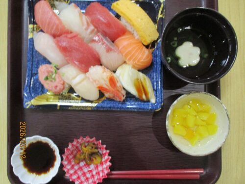 いつもお刺身なんですけど、今回はお寿司にしました。