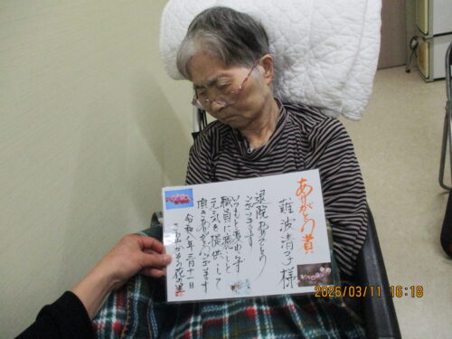 長期のご入院を経て、入居者様が入院前と変わらぬほどお元気なご様子に回復されました。