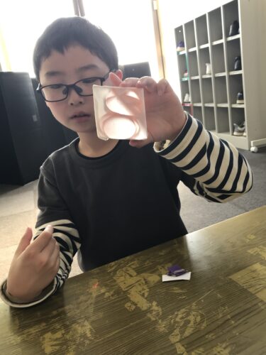 最後、薄い花紙が手にくっついてしまい「あぁ〜!」と悪戦苦闘する場面もありましたが、それも一生懸命取り組んでいる証拠。