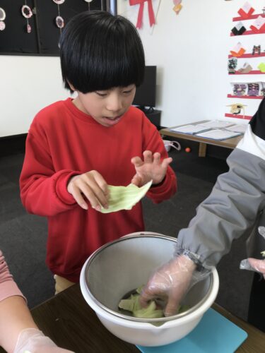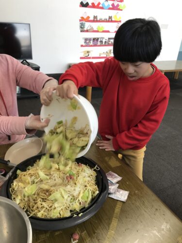お昼ご飯は、みんなが大好きな「焼きそば」作りに挑戦しました。
