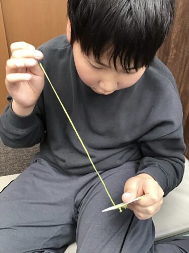 どのお子さんも、一目ずつ「次はここかな?」と慎重に穴を確認しながら進めていきます