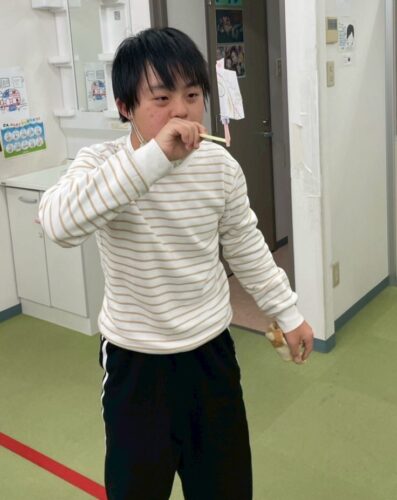好きな色を組み合わせたり、職員の顔を描いたりしていました。