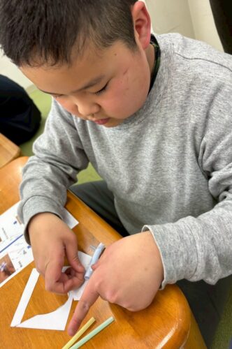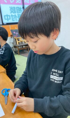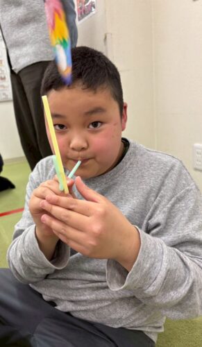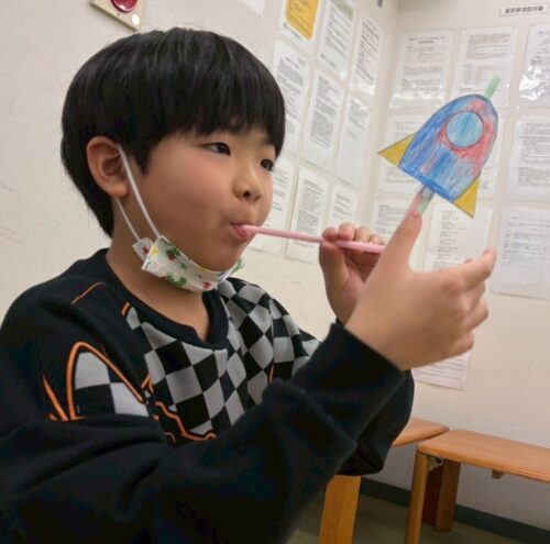 2本の細いストローをくっつけて、ロケットを差し込んで完成です。