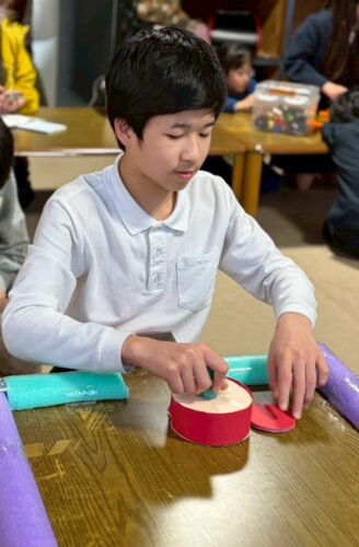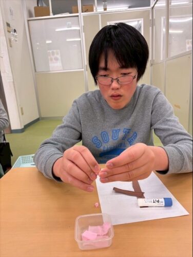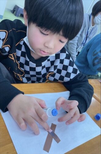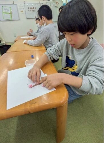 花びらの部分になる花紙を丸めて貼っていきます!