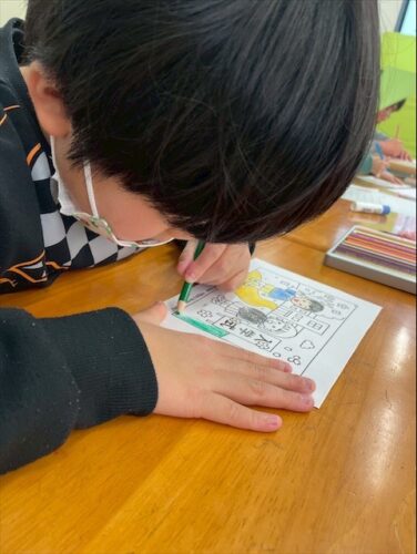 塗り絵をして画用紙に貼ったら、
