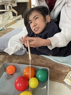 中学生の児童は目を閉じてチャレンジしていました。