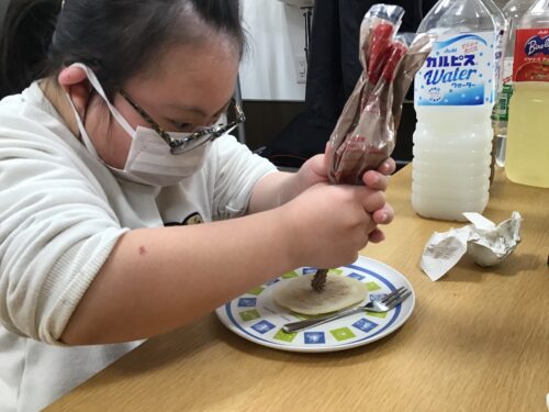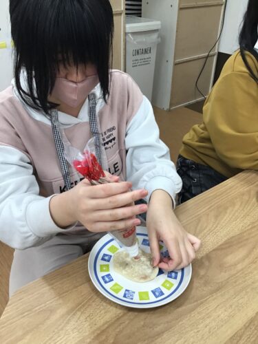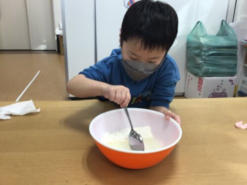 今回は、さくらもち風のおやつを作った様子を