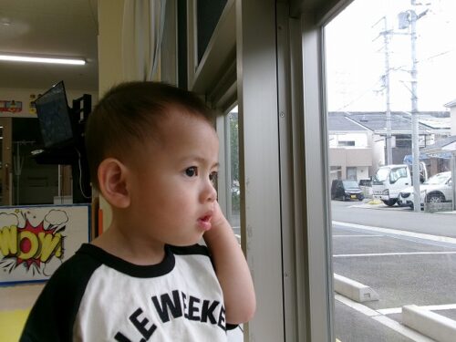 「ママ、行ったか…、よし、じゃあそぼ😁」