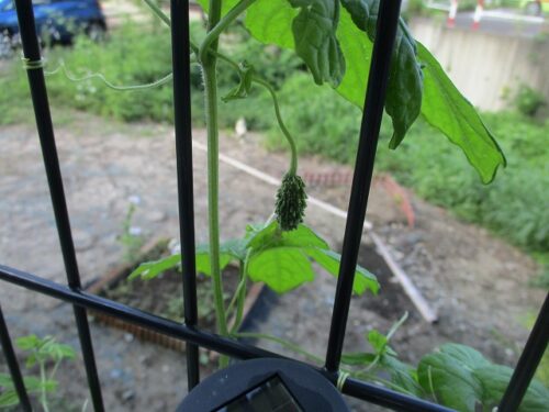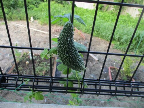 小さくてカワイイゴーヤとすくすく成長中のゴーヤです(=゚ω゚)ノ