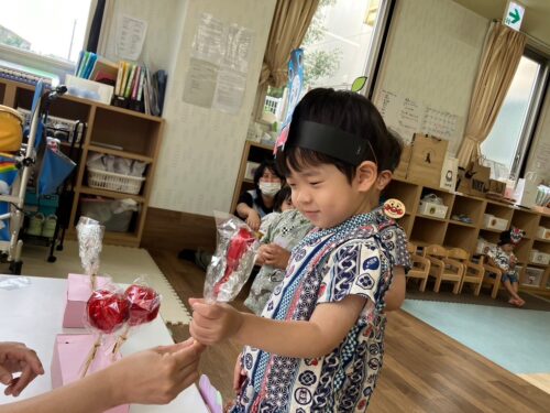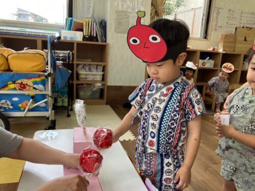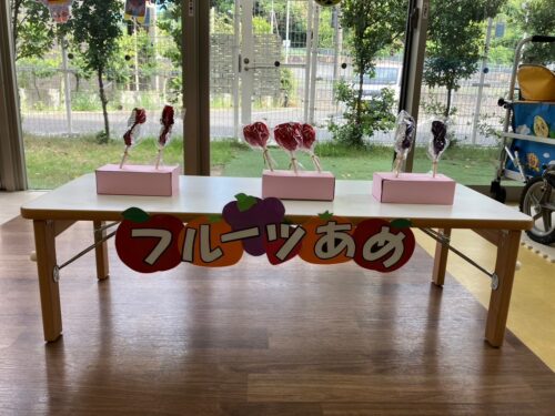 お次は、フルーツ飴の屋台へ🍎🍇🍓