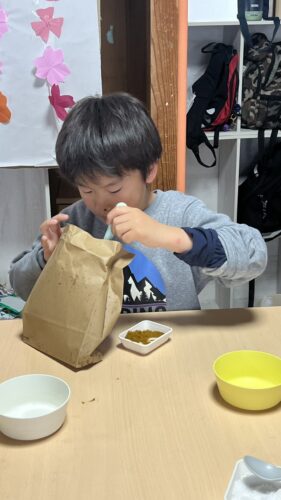ラップを使って上手に握っていました🍙