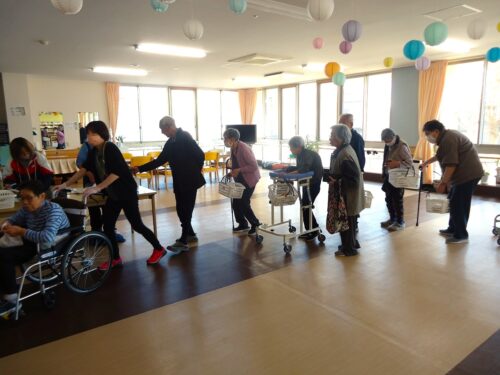 館内放送後に、たくさんの入居者様が