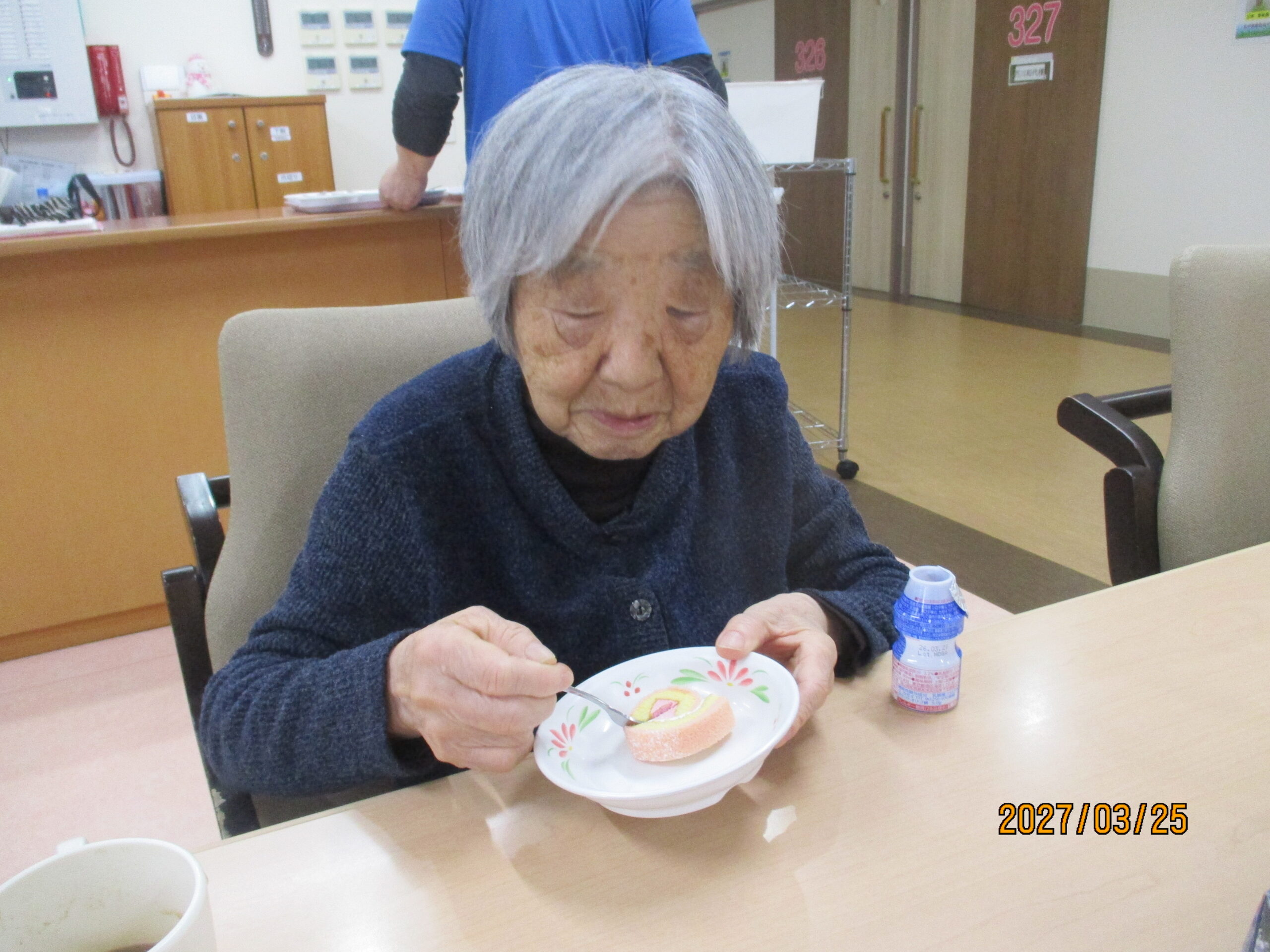 さわやかひめじ館 誕生日ケーキ🍰 2026-03-25 2026-03-25 こんにちわ。さわやかひめじ館です☻ 本日のおやつは誕生日ケーキでしたのでその様子を ご紹介させていただきたいと思います☻おいしそうに召し上がられていました☻ 来月も誕生日ケーキのブログの様子を載せたいと思います☻