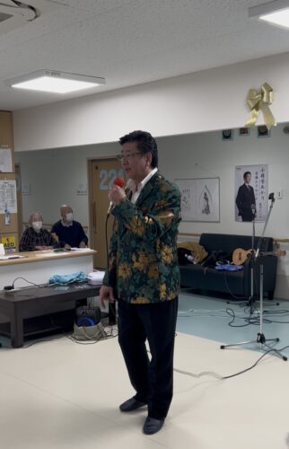 歌手の夏川えいじ様とボランティアの方が来館されました。