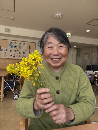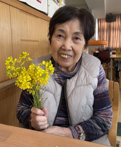 テラス前の畑に菜の花が咲いていたので