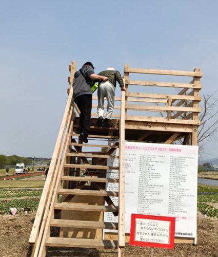 2階の入居者様は櫓にどうしても乗りたいと職員さんとチャレンジ‼