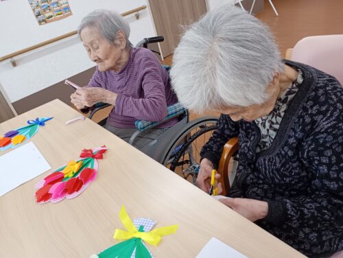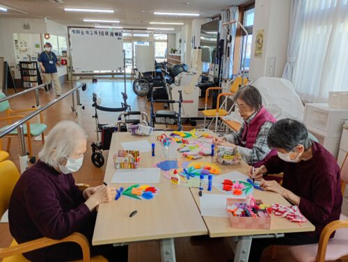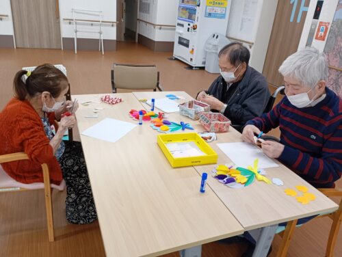 ハサミを使って上手に花びらを作っておられます。