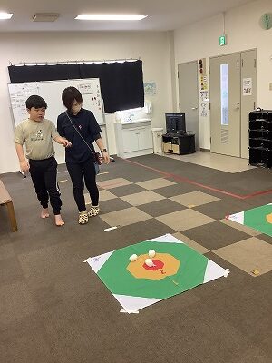 「○○さんと勝負したい!」「〇〇くん、いっしょにやろう!」と、自分たちで対戦相手を選びます。 仲良しのお友達を誘う子もいれば、「絶対に○○さんに勝つぞ!」と意気込んで職員を指名する子も。対戦前から「負けないよ〜!」と火花(?)が散る場面もあり、大盛り上がりでした。