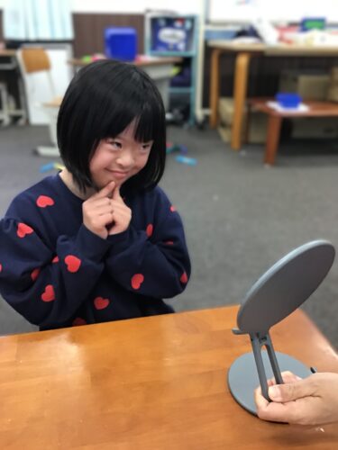 鏡に映る自分の顔をみて、喜怒哀楽によってどんな表情になるのかを確認することによって