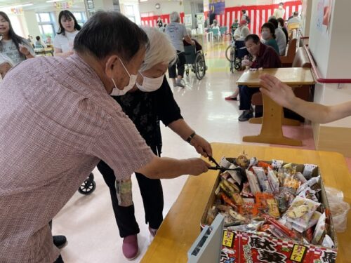 夏祭りでは軽食の提供のほか、駄菓子すくい等を行い、メインはカラオケ大会を行いました🎉🎤
