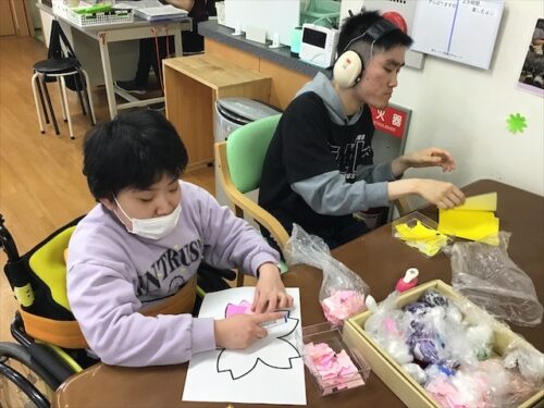 レク時間にも、桜の貼り絵をして春を感じてみました。