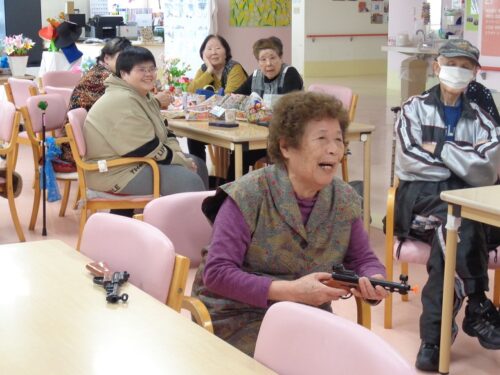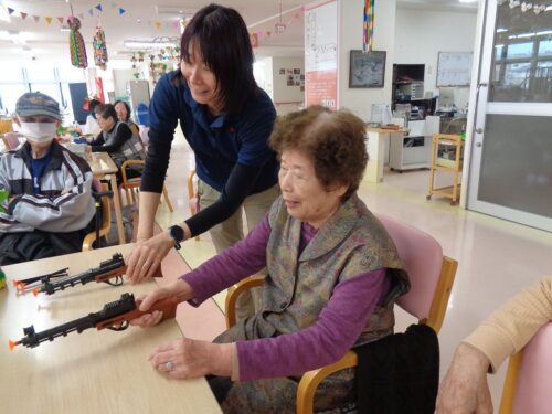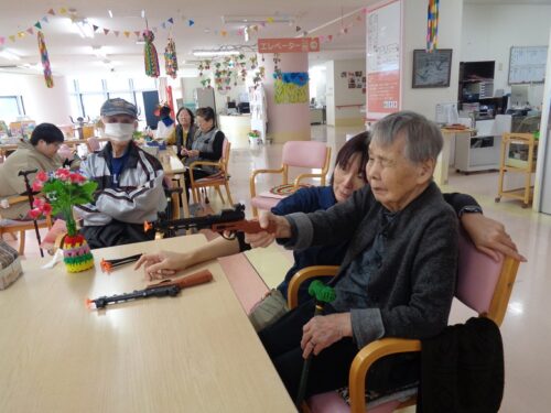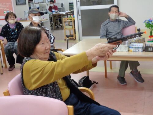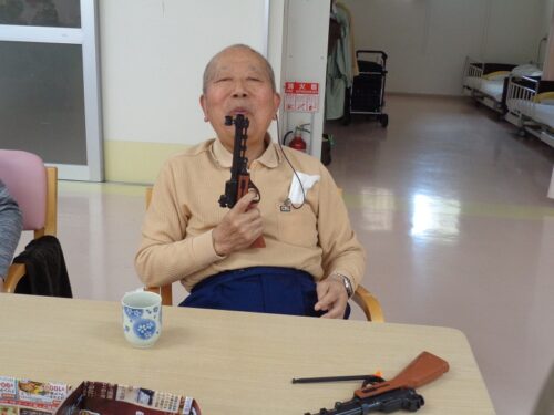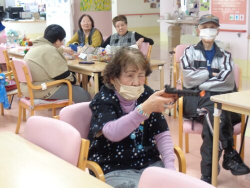 今日は吸盤付きのピストルを使って射撃ゲームを行いました🎯