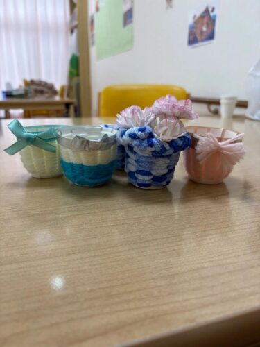 さわやかかぬま館 小物入れ作り【さわやかかぬま館】 2026-04-03 2026-04-03 この日は紙コップと毛糸を使って小物入れを作りました💍✨ 切り込みを入れた紙コップに交互に毛糸を巻いていきます👍 お二人ともおしゃべりしながらも手は止めません👏 とってもかわいくできました🥰🌷 担当☺見目