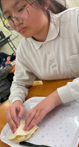 トルティーヤは初めて使う食材でしたが、みんな上手に作れていました。