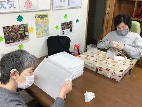 最後に、みんなで使っている道具は、みんなできれいに拭き掃除も忘れません