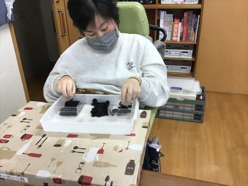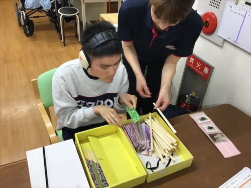 この方は、スタッフの説明を聞きながら、割り箸を袋に入れていますよ