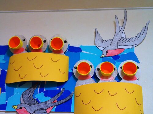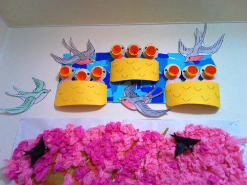 グループホームひかり ツバメ 2026-04-06 2026-04-06 4月6日月曜日です。 2階のエレベーター前に幸運を呼ぶツバメ、ツバメの雛たち、てんとう虫、ミツバチ、蝶 はらぺこあおむしも掲示されています。 童話の世界に入ったような、心が弾むひとときです。👻🐬🐿️🐭🐰👑 担当:内橋