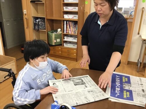 レクの後半は、新聞を使ったゴミ袋折りに挑戦💪