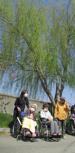 同じ公園に大きな柳が青々として綺麗でした🎵
