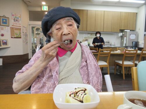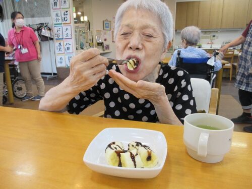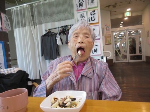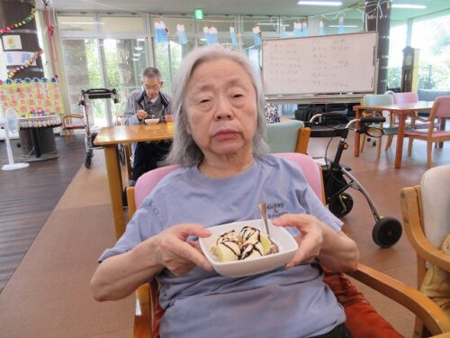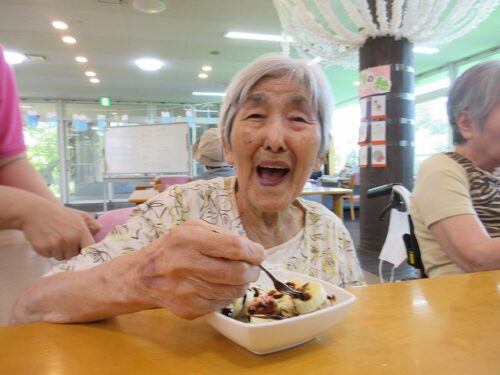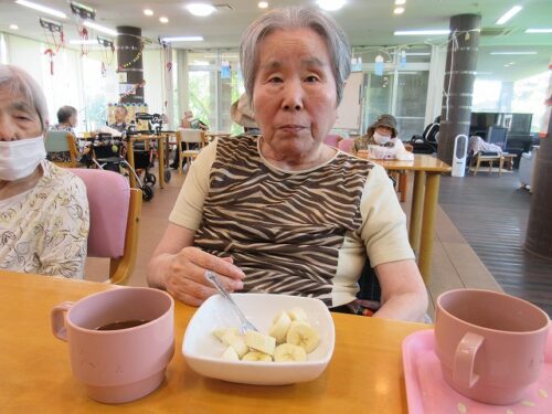 先日、バナナの日があったので立派なバナナを、チョコソースやアイスクリームと一緒に皆で美味しく頂きました。😋