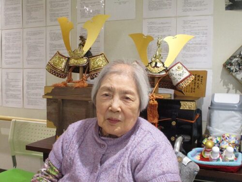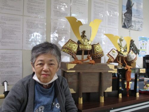 今日は兜を飾りました😊  兜と一緒に ハイポーズ📸