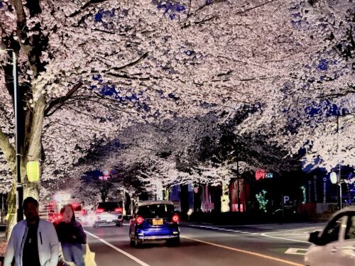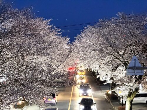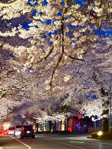 さつきロードの桜並木の夜桜はファンタスティック!