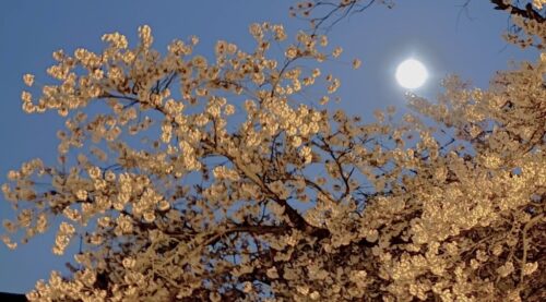 県内でも有数の桜並木のライトアップ、そして満開の時、ちょうど満月