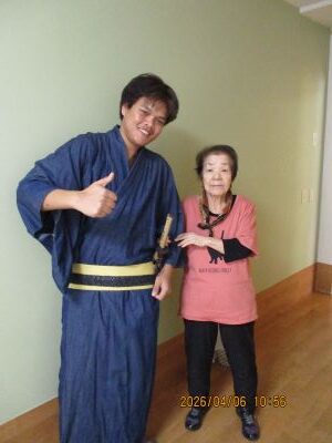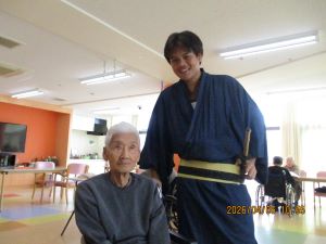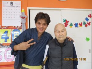 浴衣を着た実習生を見て入居者様も笑顔です。