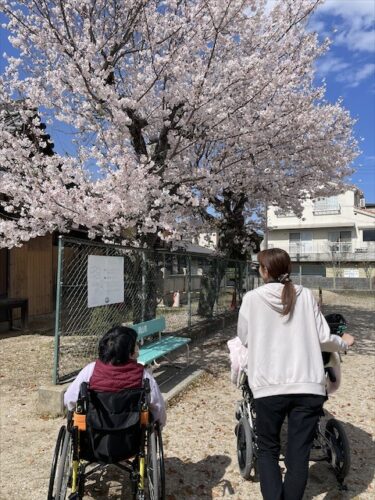 天気のいい日には近所の公園へ、お花見にも出かけ桜🌸を見ながら利用者様とリフレッシュ😌