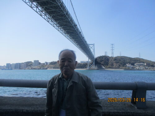 関門海峡と一緒にパシャリ!少し風が強く肌寒かったようです(;^ω^)