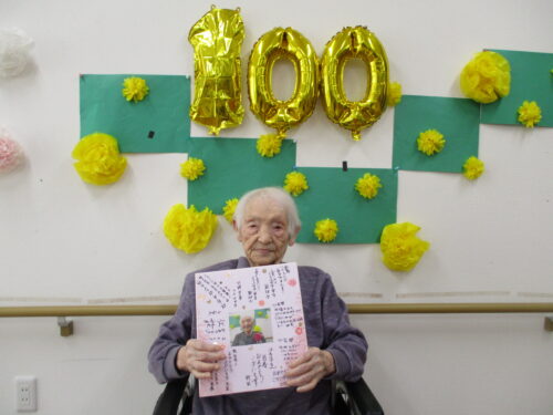 先日100歳の誕生日を迎えられた入居者様の誕生会を行いました!