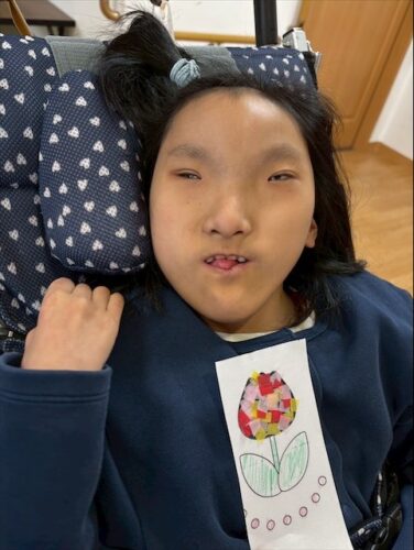 そして、出来上がった花飾りを見て良い笑顔を見せてくれました😊✨