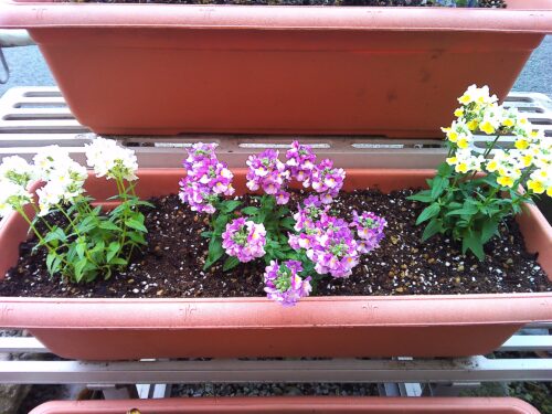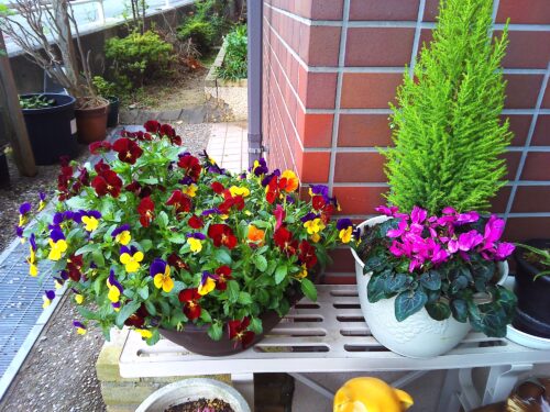 グループホームひかり 玄関前の花々 2026-04-15 2026-04-15 4月15日水曜日の朝です。 玄関の花々が恵の雨で活き活きしています。❤️💙🧡💛🩵💜💞 癒されるひとときです。🐿️🐞🐈🐕🦺🐓🤗 担当:内橋