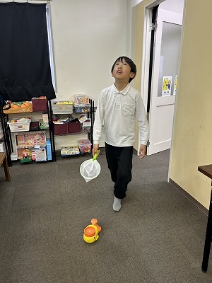 最初はタイミングを合わせるのが難しかった子も、何度も挑戦するうちにコツをつかみ、見事に網の中へ「ナイスキャッチ!」。 「やったー!取れたよ!」と、網の中のプロペラを嬉しそうに見せてくれる笑顔がとても印象的でした。