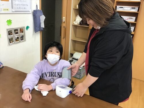 バイタル測定だけでなく、今日の気分はどうだろうか、スタッフと共有しておきたいことはないかなどお話ししています。