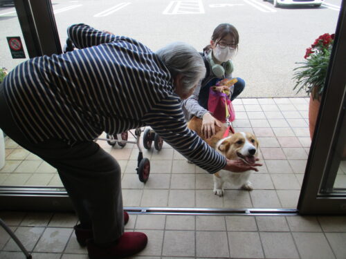 職員が犬の散歩の途中で寄ってくれました🐶
